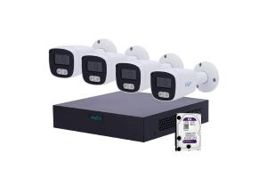Composizione: 4 telecamere Bullet Easy-P 4 MP (2688x1512) con IR per visione notturna, IP67 per uso esterno + NVR PoE 8 canali fino a 6 MP UV-NVR-108S3-P8-ECO + Hard Disk 1 TB preinstallato.